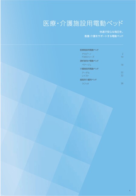 医療・介護施設用電動ベッド快適で安心な毎日を。看護・介護をサポートする電動ベッド医療施設用電動ベッドアスピーノP300シリーズ透析室向け電動ベッドペアージュ介護施設用電動ベッドアーデルレイスト超低床介護用ベッドラフィオ21018223238